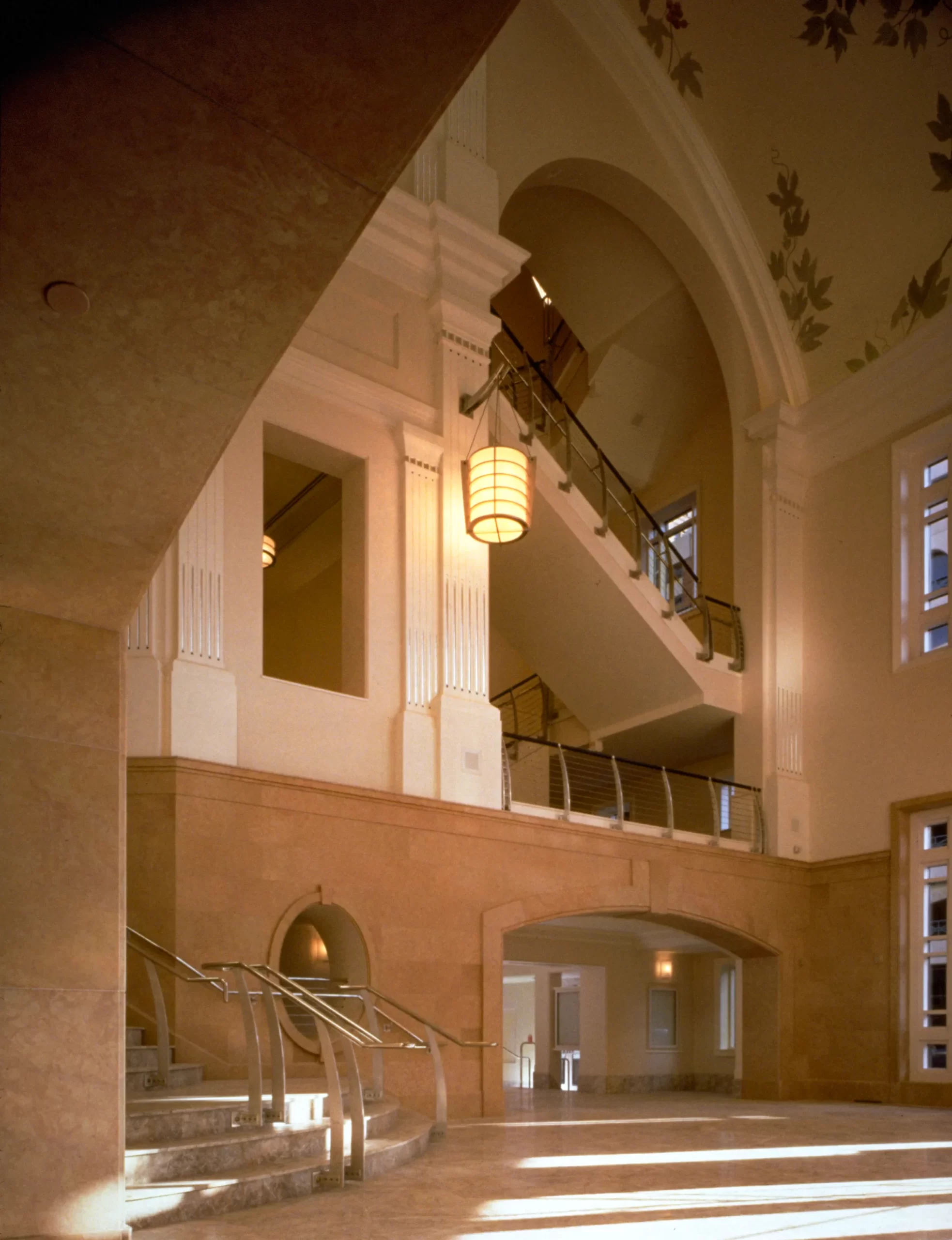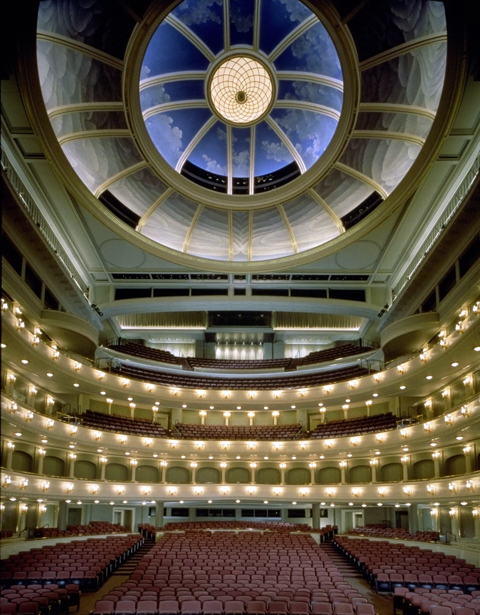 Bass Performance Hall is one of the most recognizable features of the Fort Worth downtown landscape. Home to the Fort Worth Symphony Orchestra, Texas Ballet Theater, Fort Worth Opera, and Van Cliburn International Piano Competition and Cliburn Concerts, the 10-story structure gracefully mimics the traditions of great European performance halls, while simultaneously standing out as a modern performance venue for its resident companies. The building’s grandiose design is enhanced by two 48-foot-tall sculpted angels along its exterior–each holding 16-foot long, gold-leafed trumpets–and an interior that boasts a hand-crafted dome, proscenium arch, 2,200-seat multipurpose hall, and series of fresco murals, grand staircases, and relief sculptures.