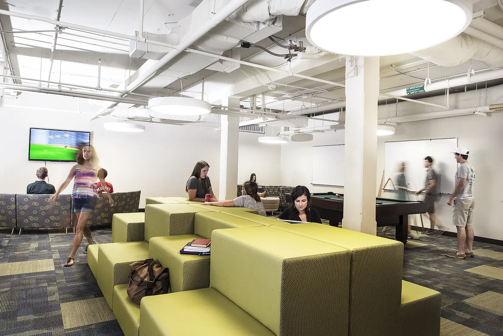 The Baylor University South Russell Hall Renovation project included an in-depth renovation to the 60-year-old hall that included a full abatement and interior renovation of the building, resulting in 114 student residence hall rooms. The hall now has a central open staircase connecting the three levels to the basement and making the lower-level student lounge more accessible and inviting. Additions included a new laundry area, community kitchens/vending machines, redesigned community bath areas, and a new lower-level lounge with a fitness room and game and recreation area.