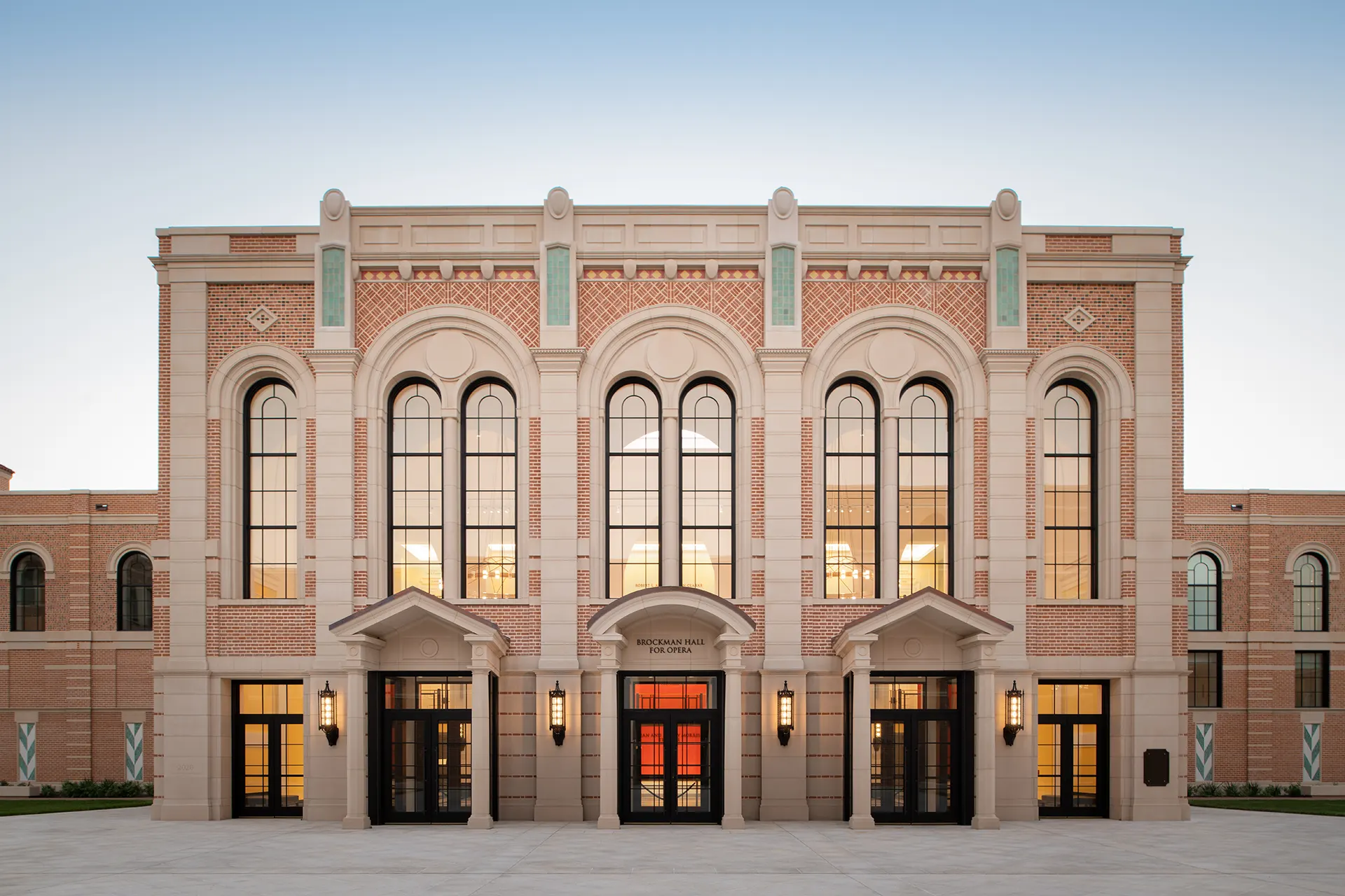 The Brockman Hall for Opera (Brockman) is a European-style opera house and teaching facility for the Shepherd School of Music at Rice University. Designed by Allan Greenberg, the LEED Silver facility sits on a five-acre lot and features a 600-seat opera chamber, two rehearsal halls, 25 practice rooms and teaching studios, and a production suite with two dressing rooms. Brockman was built with strict attention to acoustical requirements, a key accomplishment that will help the building fulfill its role as a state-of-the-art music center. The exterior of the opera house is a striking display of meticulous design and craftsmanship. With more than 550,000 handmade bricks laid in seven varying patterns with 12,810 cubic feet of cast stone, the ornate façade was successfully delivered by Linbeck’s implementation of an extensive shop drawing and coordination process.