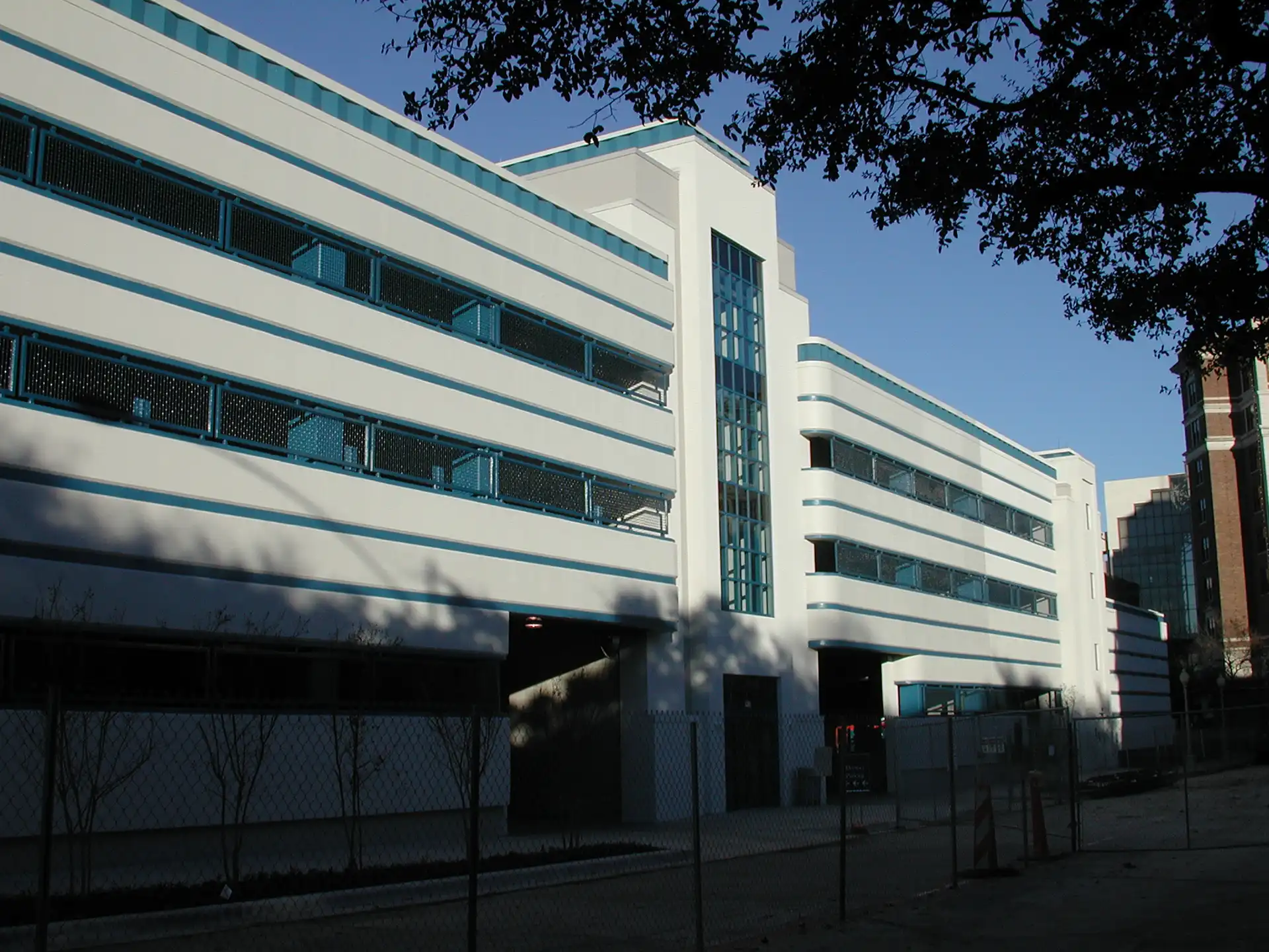 The North Garage Expansion was part of an overall campus expansion for Cook Children’s Medical Center. The original North Garage, built by Linbeck in 2001, was a four-level parking structure designed with the capability for a two-level vertical expansion. The North Garage expansion included an increase in the parking capacity, helistops, and a new loading dock. Expansion on Levels 2-6 allowed for increased parking on each level by tying into existing garages. Above Level 6, there are two helipads, consisting of structural steel frames supporting a specialty shape aluminum decking plank system. Each pad is capable of landing up to a 12,000-pound helicopter with a 44-foot rotor diameter. Due to flight arrival and take-off paths, the pads were required to be located at the far north end of the garage. To route patients to the hospital, the two pads connect to an elevated walkway that leads to an elevator tower specifically designed to accommodate patients on stretchers.