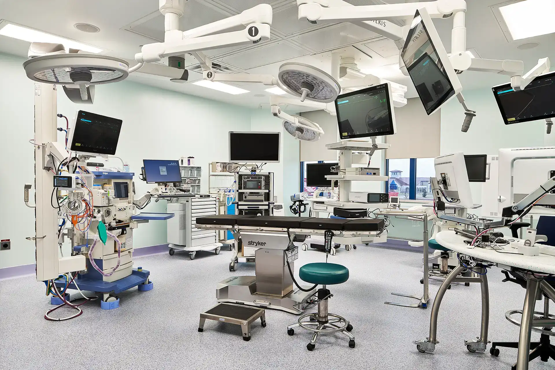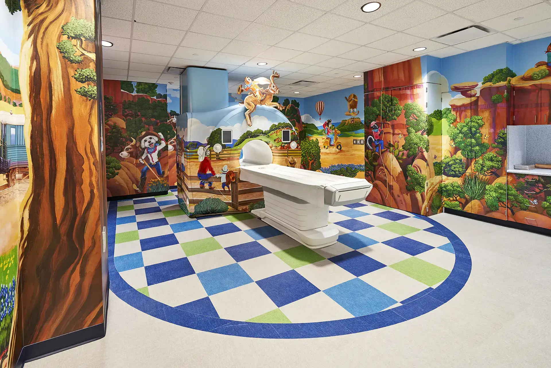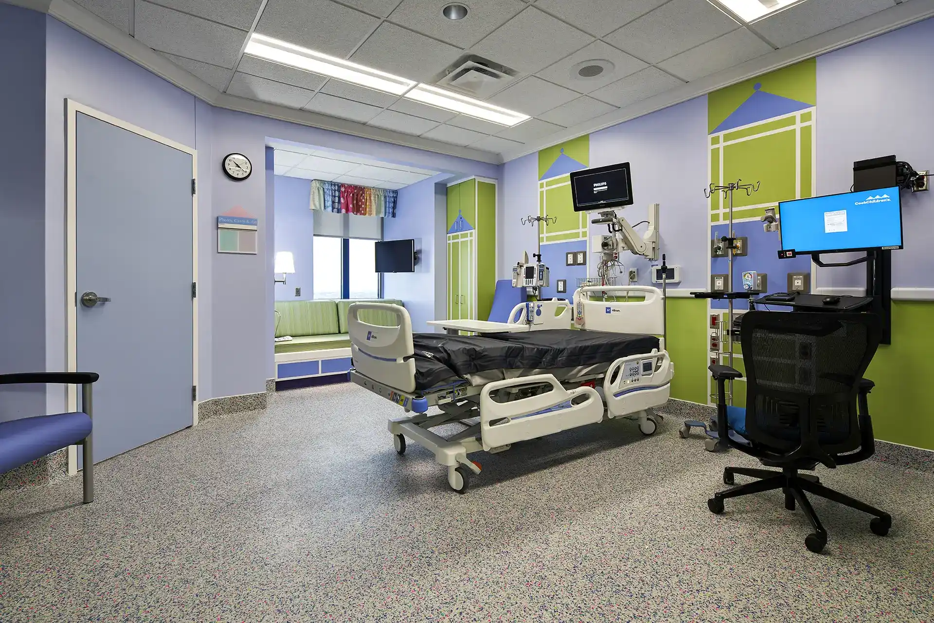 The new Prosper Hospital is the first hospital for the Town of Prosper and the first green-field hospital for Cook Children’s outside of its original main campus in Fort Worth. The six-story, short stay inpatient pediatric hospital is outfitted with the latest technologies and includes an emergency department suite with exam and resuscitation rooms, a surgery suite with prep/recovery rooms, PACU bays to support multiple ORs and special procedure rooms, a lab and pharmacy, a spacious servery, and other patient-focused amenities. The top floor supports inpatient care with 14 universal med/surg beds and 10 PICU beds. The new Prosper Hospital bridges the connection to the previously built Medical Office Building, thereby completing Cook Children’s master campus plan. An imaging suite and data center connect the two buildings on the first floor; the second-floor connector houses an infusion suite and staff backstage spaces.