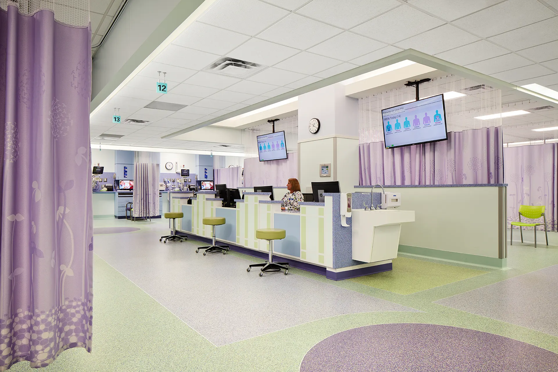 Cook Children’s Medical Center South Tower is a new, nine-story hospital expansion featuring all state-of-the-art facilities, an expanded emergency department, clinical laboratory space, and Heart Center for the Dallas-Fort Worth metro area’s largest pediatric healthcare provider. The project was delivered using the Integrated Project Delivery method and also included 100,000 SF of renovation in the adjoining South Extension. The tower was delivered in a carefully sequenced construction and transition schedule consisting of more than 30 phases to facilitate the relocation and expansion of multiple departments and minimize the impact on ongoing operations. The project also includes two basement levels and seven additional floors. The basement is dedicated to more than 22,000 SF of medical laboratory space along with sterile processing rooms and a medical library.