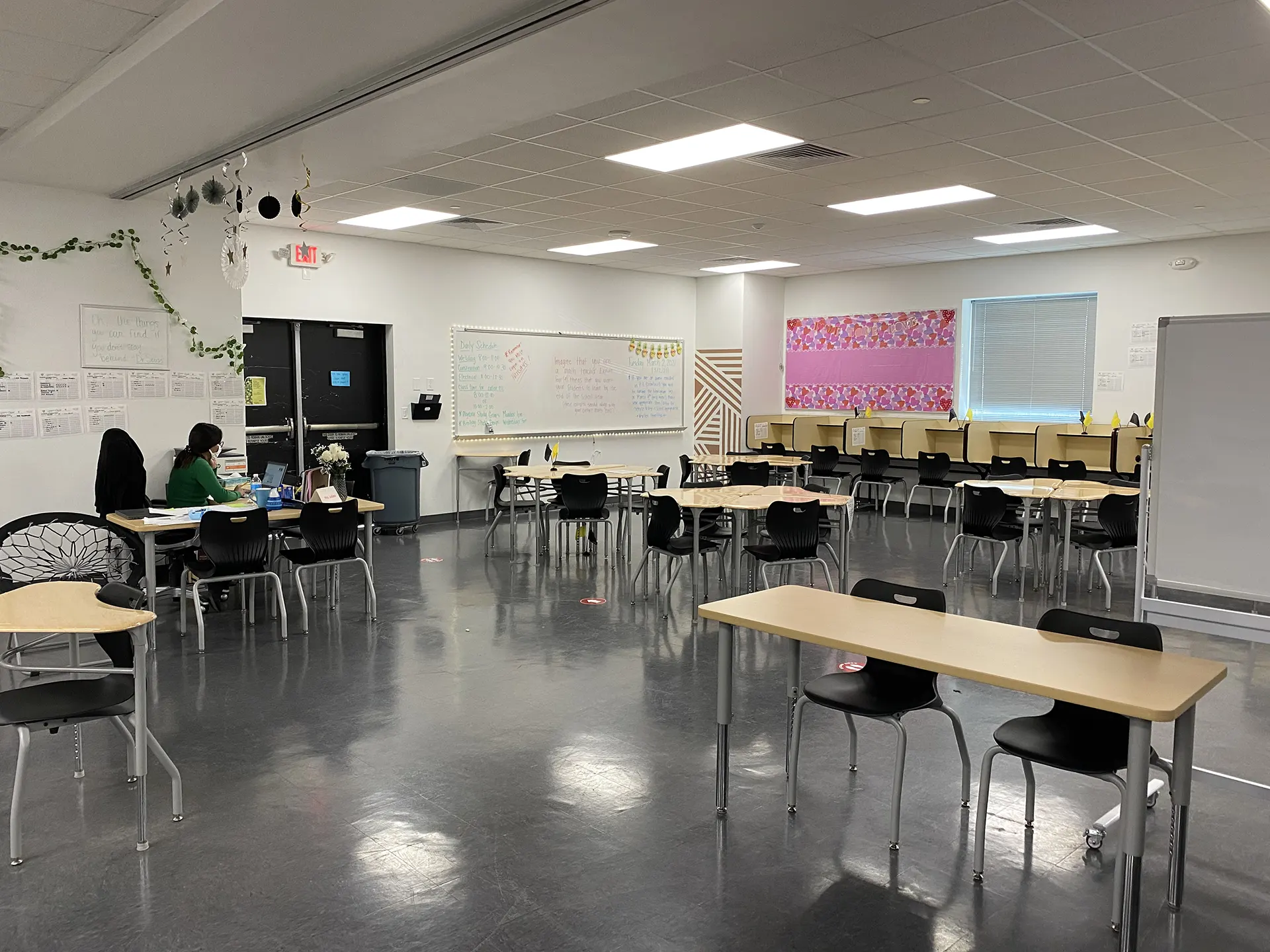Linbeck partnered with Gallery Furniture to adaptively reuse a portion of the existing showroom and transform it into a technical high school for students ages 16-30. Located adjacent to the furniture store, the new trade school houses traditional classrooms and features trade shops that prepare students for careers in horticulture, welding, plumbing, and other trades. The educational facility also contains a free daycare to assist Gallery Furniture employees and other students. As part of our safety plan, Linbeck applied a 40-foot-tall firewall that kept the two spaces separate and maintained strict life safety and fire codes. We also retrofitted significant portions of the project, including saw-cutting the concrete, so the new design elements could fit into the existing slab seamlessly.