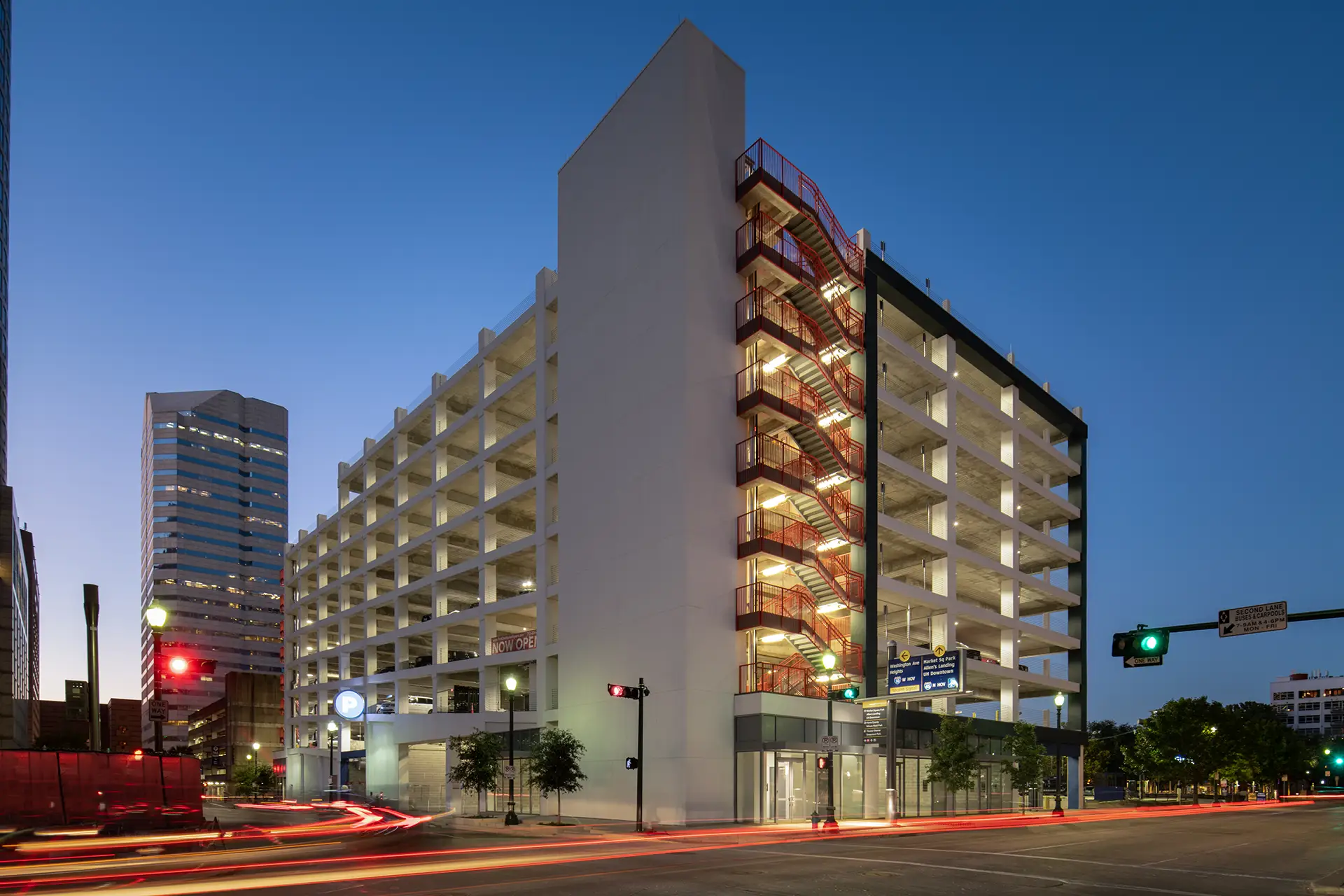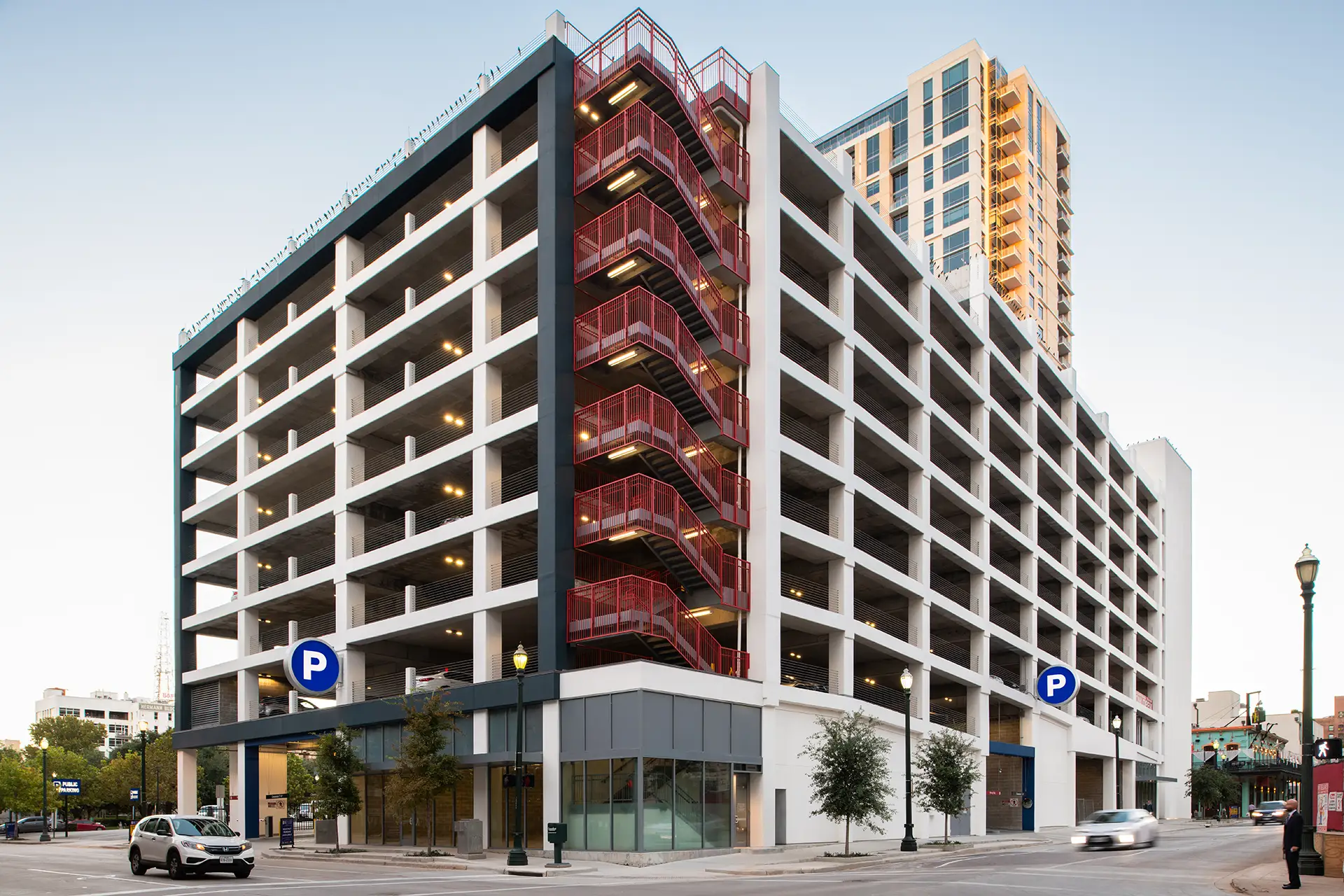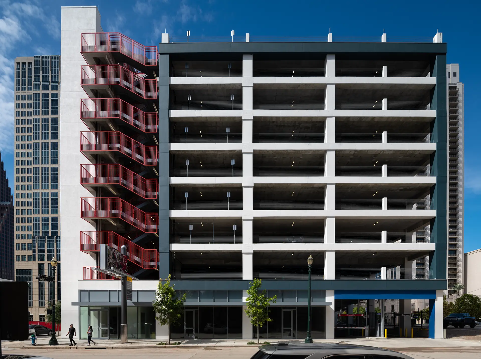 Located in the heart of Houston’s historic downtown district and within steps from the Theater District, One Market Square Garage is a double-helix garage that acts as a central parking destination for the surrounding area. The 9-story, cast-in-place garage offers more than 900 parking spaces and provides easy access to downtown offices, countless restaurants, nearby theaters, and the underground tunnel system, which connects the city’s major buildings and offices. In addition to its proximity to local mainstays, One Market Square Garage also includes street-level retail space and features a full-scale Rodeo-themed mural, painted by celebrated artist Gonzo 247.