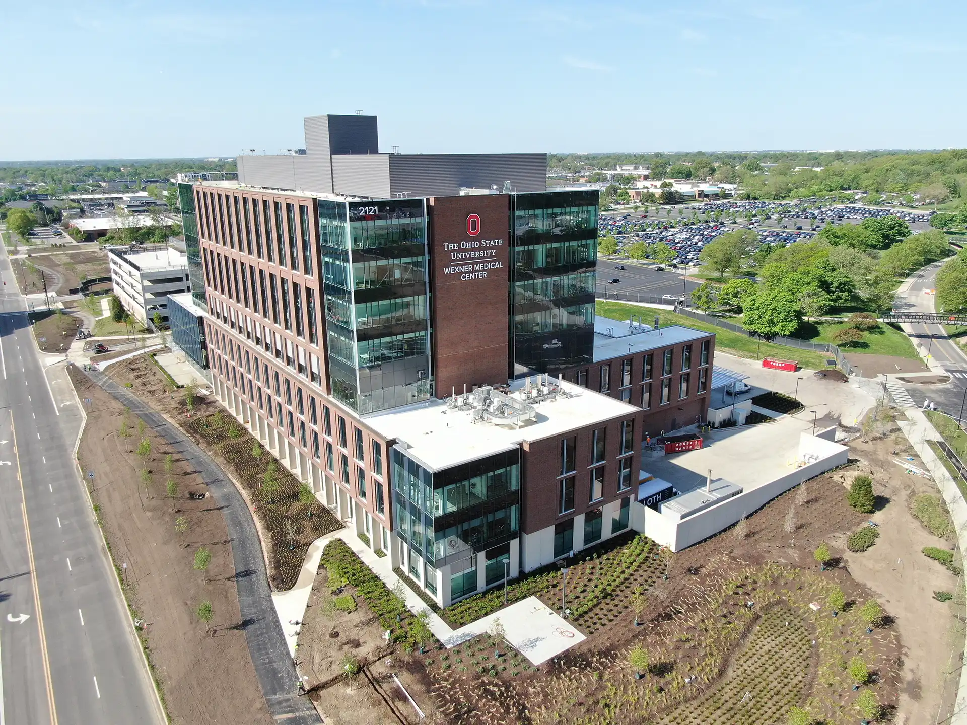 The James Outpatient Care and Proton Therapy Center at Wexner Medical Center is the single largest facility project in The Ohio State University’s history. The Proton Therapy Center houses the country’s first multi-room configuration of Varian’s ProBeam 360 equipment. The center includes two full gantries and one fixed beam room, which is the world’s first fixed beam that is capable of upright patient treatment through Leo Cancer Care. The Ambulatory Facility consists of 13 different specialty ambulatory clinics, a retail and clinical pharmacy, faculty and administrative offices, infusion therapy, urgent care, clinical laboratory services, ambulatory surgery, endoscopy, medical imaging, and outpatient rehabilitation. A 640-car parking garage also accompanied the project.