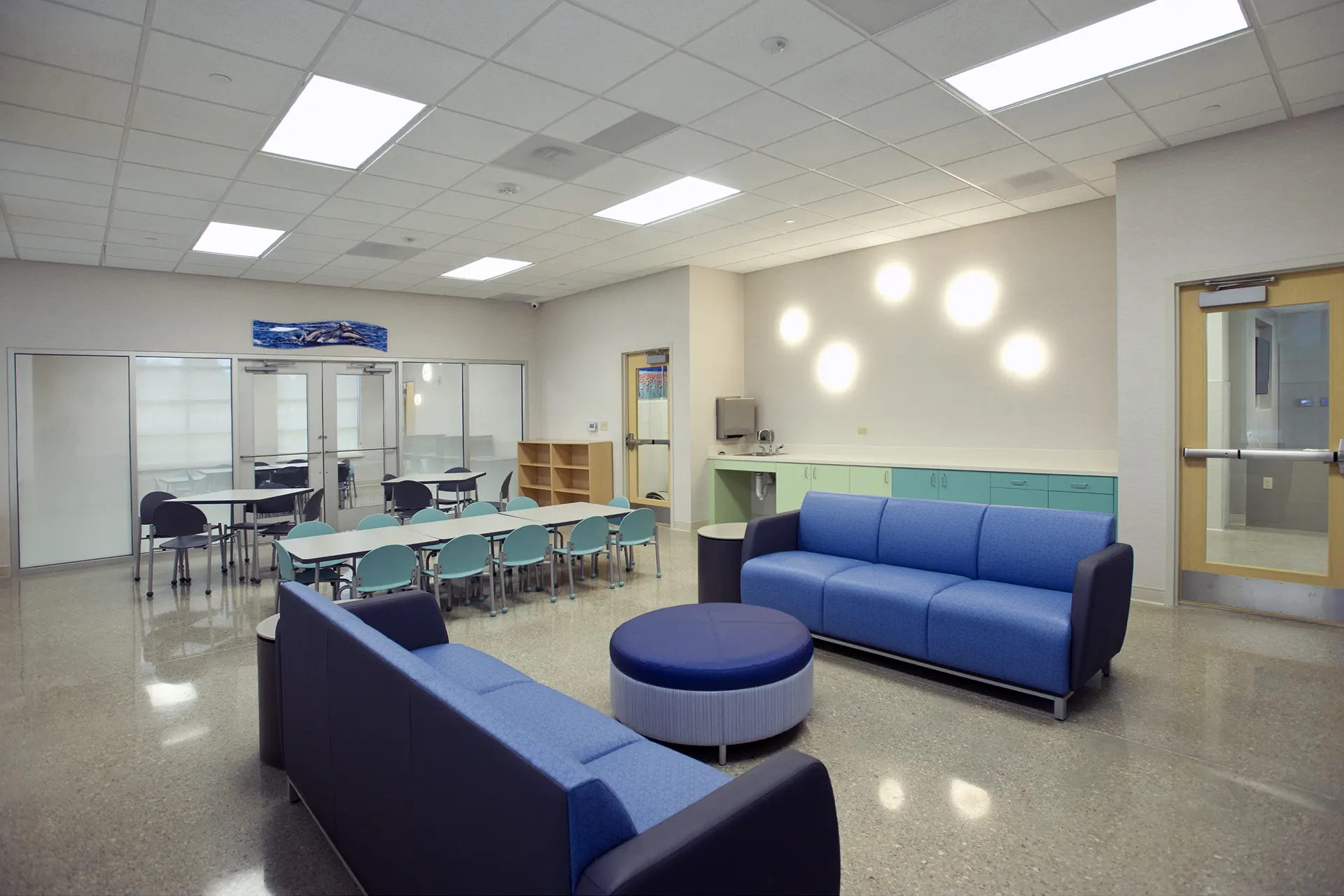 The Morris Foundation Women and Children’s Center is a transitional multifamily housing facility that was completed by Linbeck and Bennett Benner Partners through a design-build approach. Designed as a cost effective, warm, and inviting residence, the center serves as a safe launch pad for women and their children in need. It was the team’s goal to create a dignified home that offered both stability and support to families. The Women and Children’s Center provides emergency and transitional shelter to approximately 95 homeless children and 40 mothers and includes classrooms, nursery and daycare facilities, a kitchen, dispensary, case management offices, and an outdoor play area. Since its opening, the center has become the Morris Foundation Family Services Center to extend its services to single fathers with children and two-parent families experiencing homelessness.
