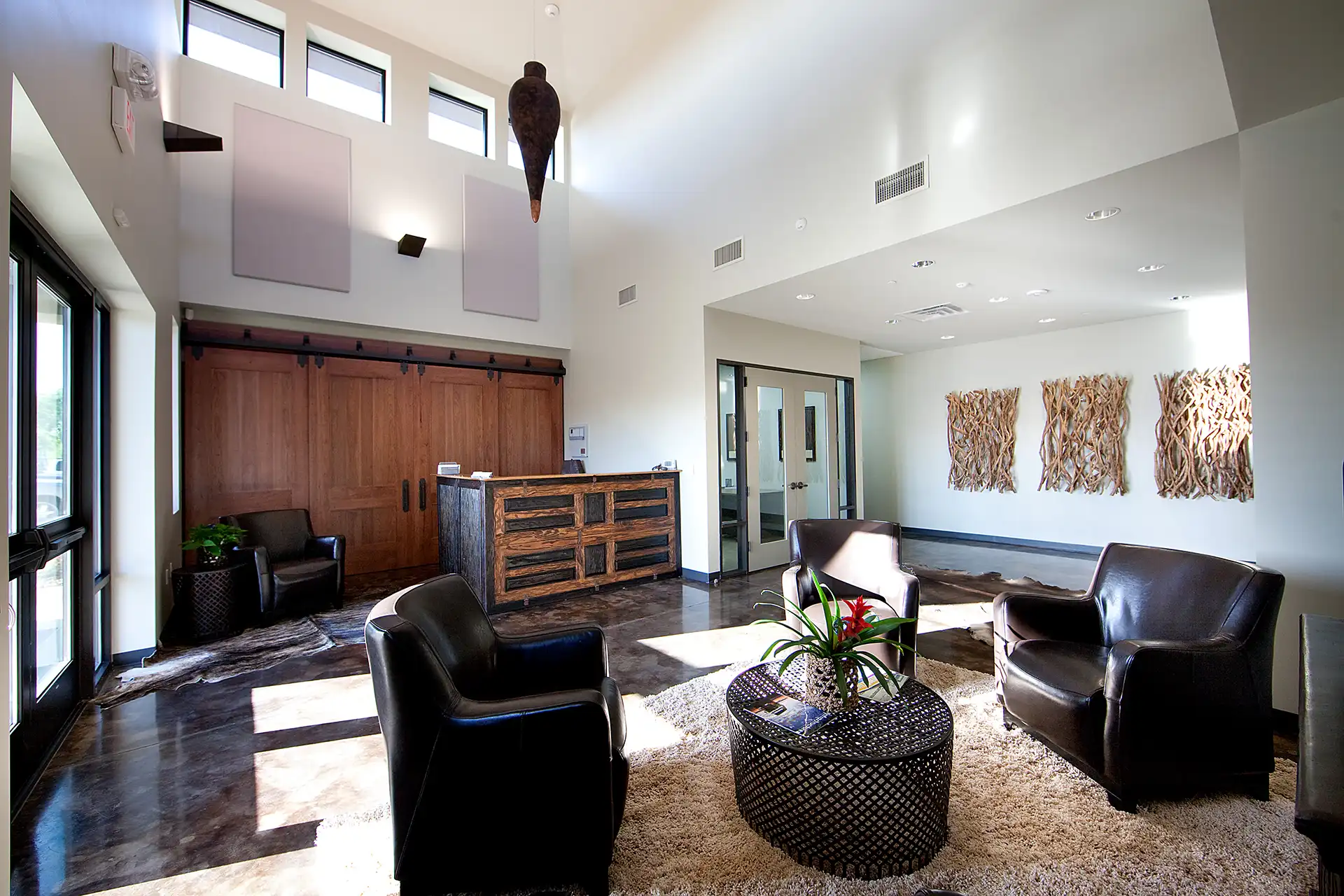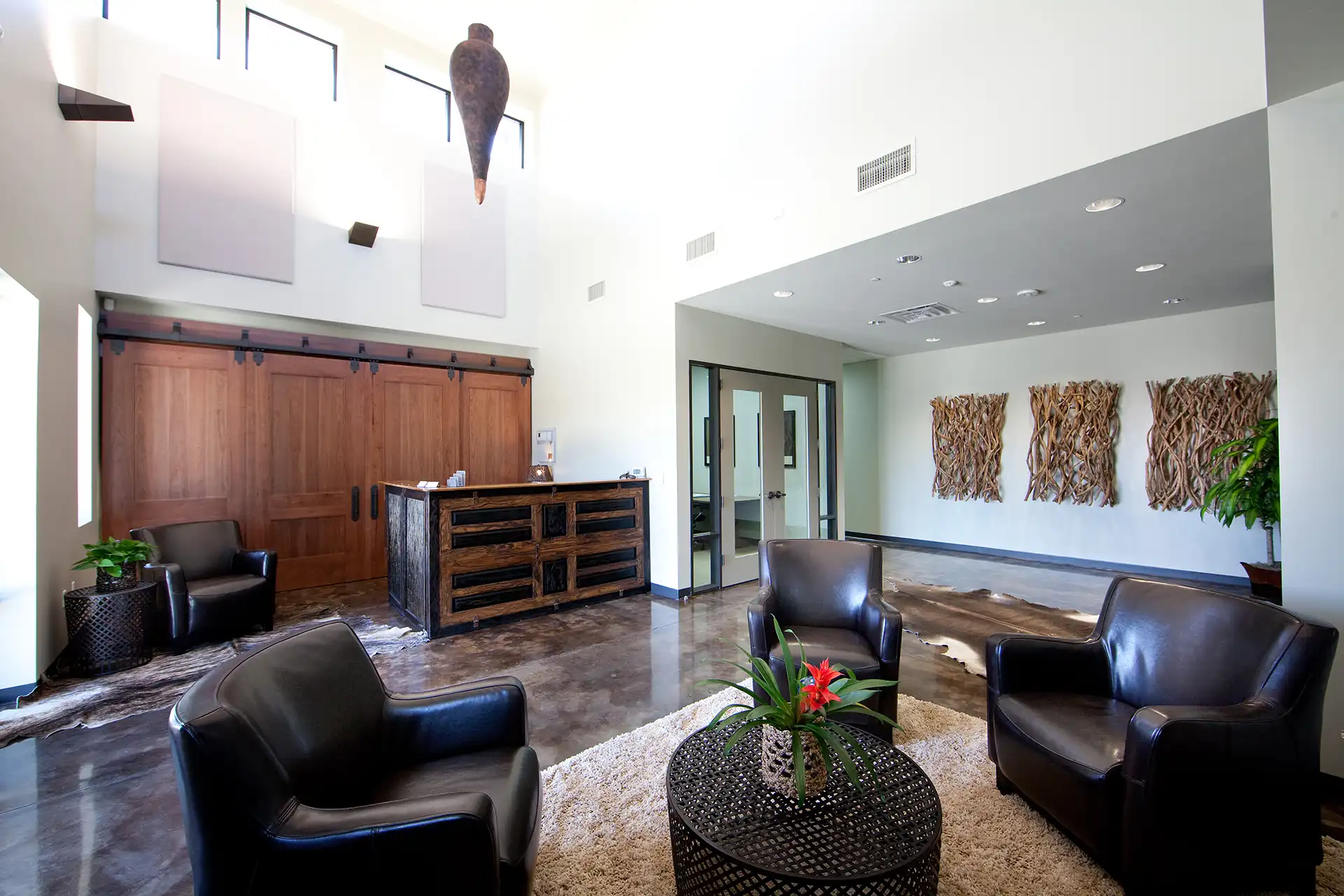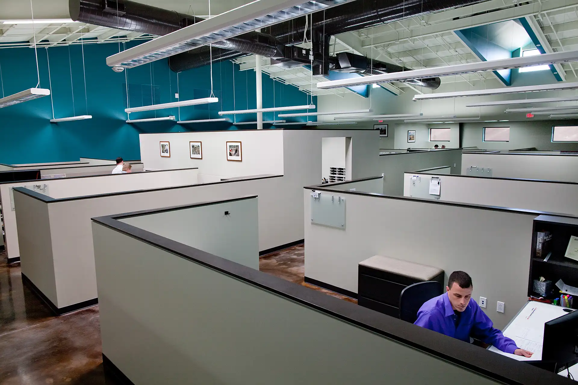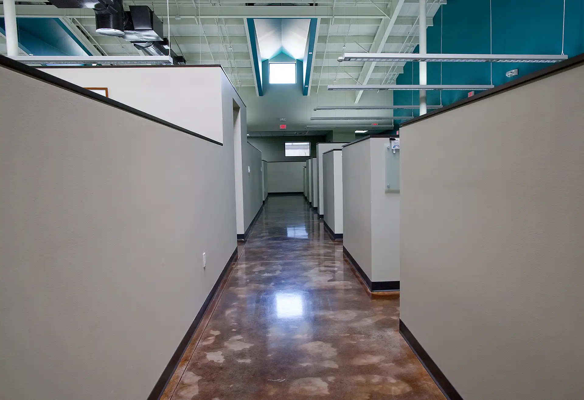 Slack and Co’s high-end office space serves as the home office for two companies and features a 900 SF training room, exercise room, and shared kitchen and break area. Designed to emphasize natural light, it includes windows in every exterior office, along with dormer windows and skylights for interior illumination. Upgrades during construction included premium light fixtures, custom casework, granite countertops, quarry tile, modified layouts, and expanded wiring for advanced video and data systems. A collaborative team effort ensured these enhancements were completed seamlessly. Full-size mock ups for key design elements allowed the owner to visualize and refine details before implementation, ensuring a polished final product.