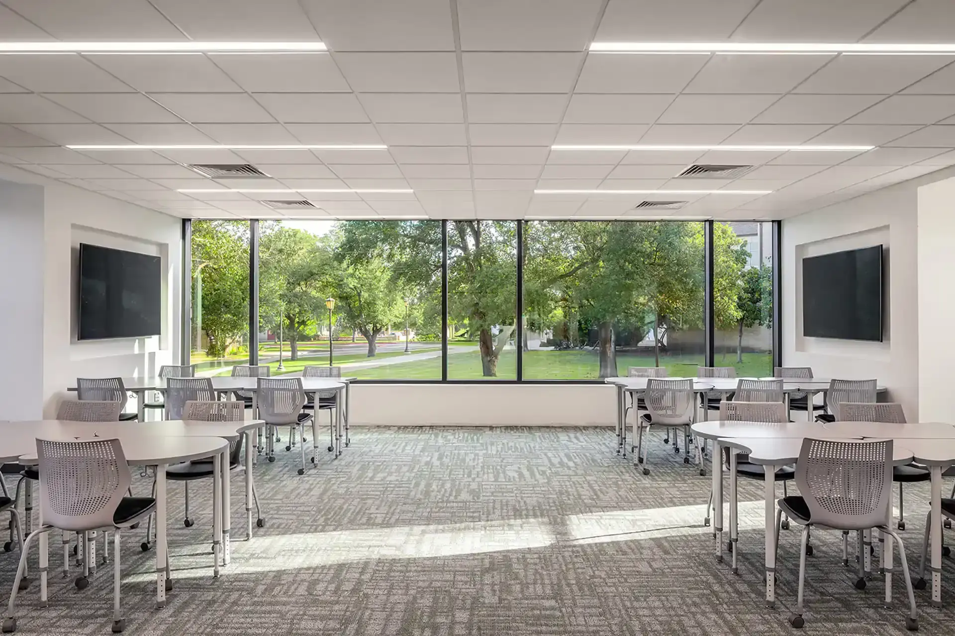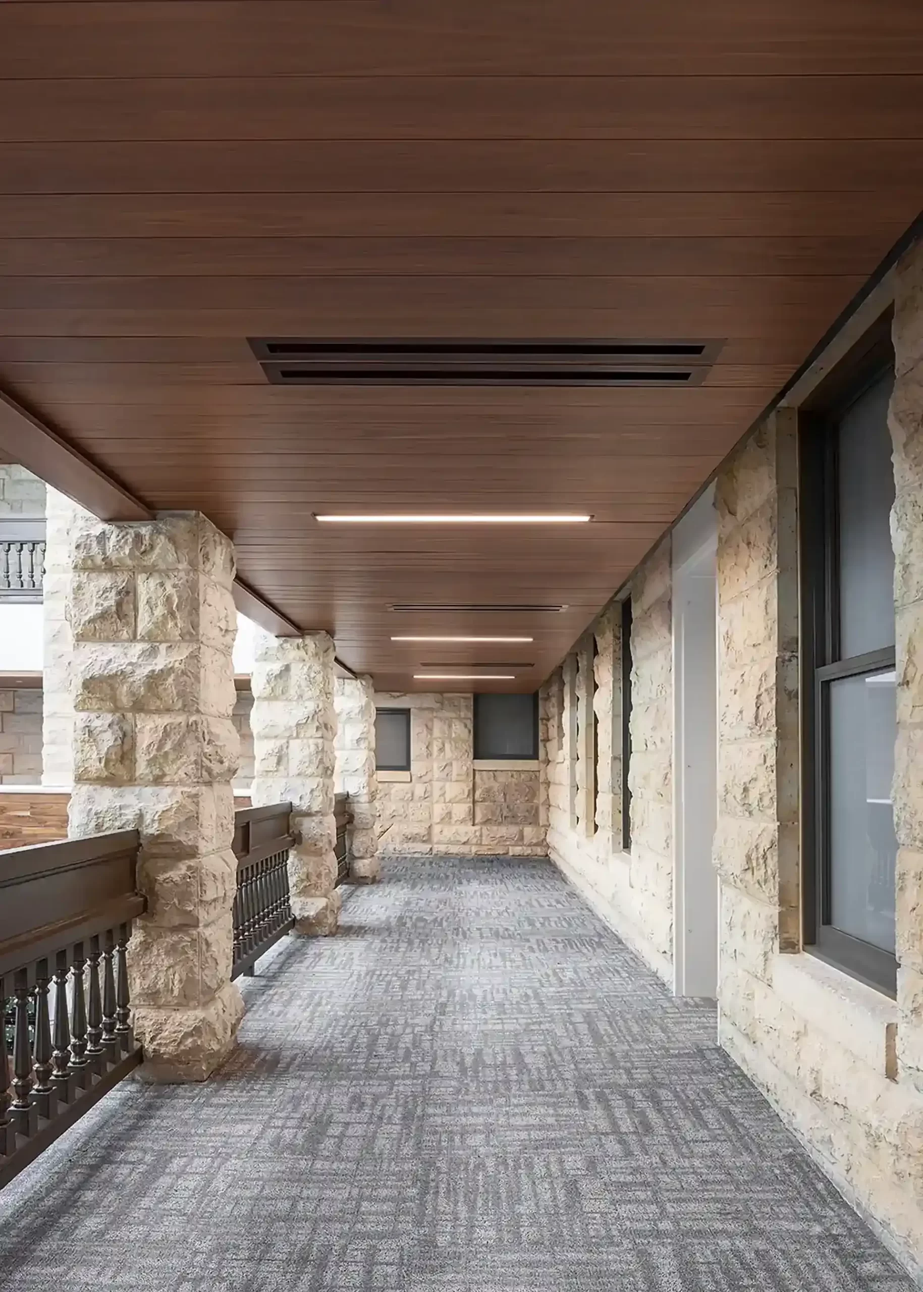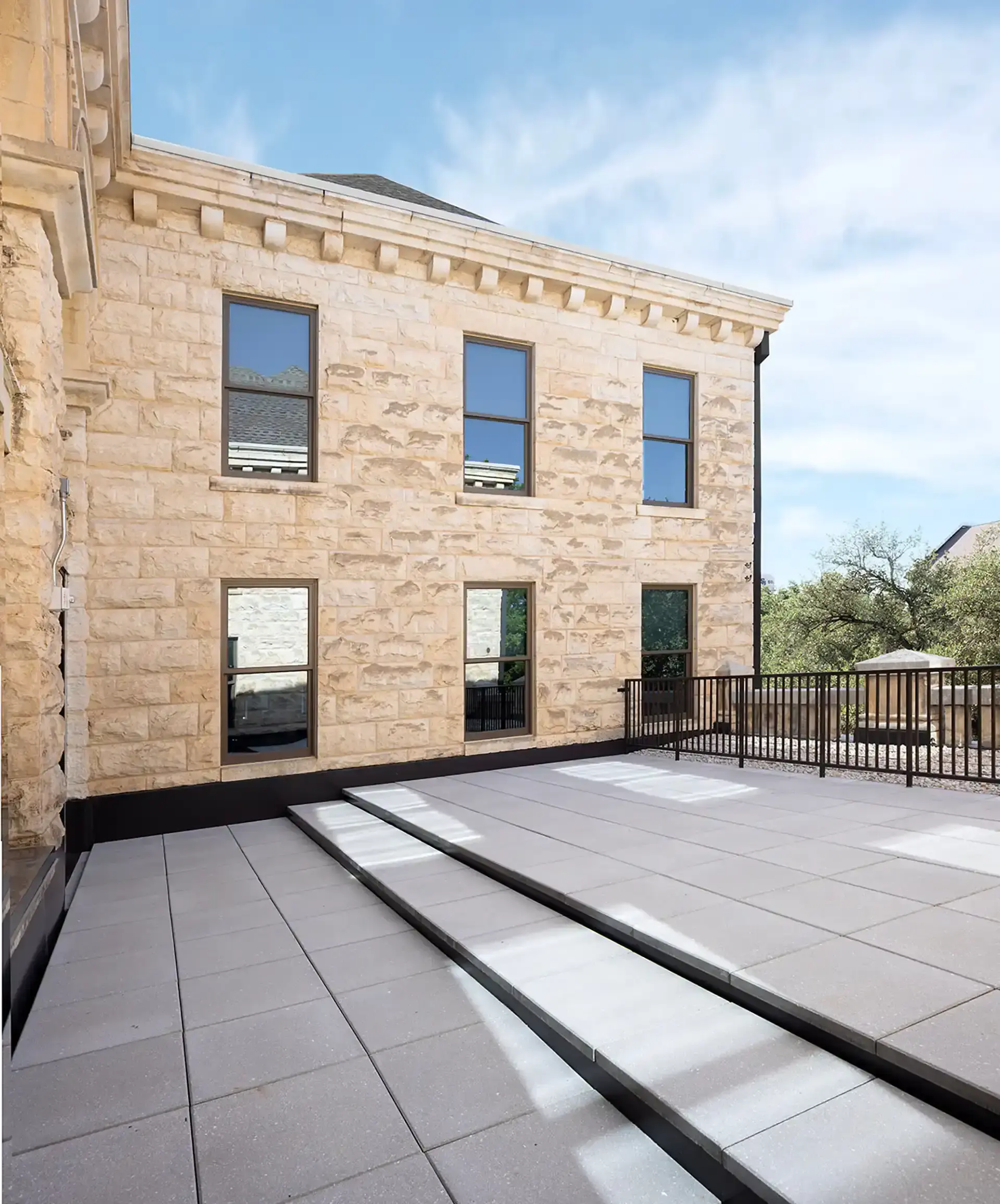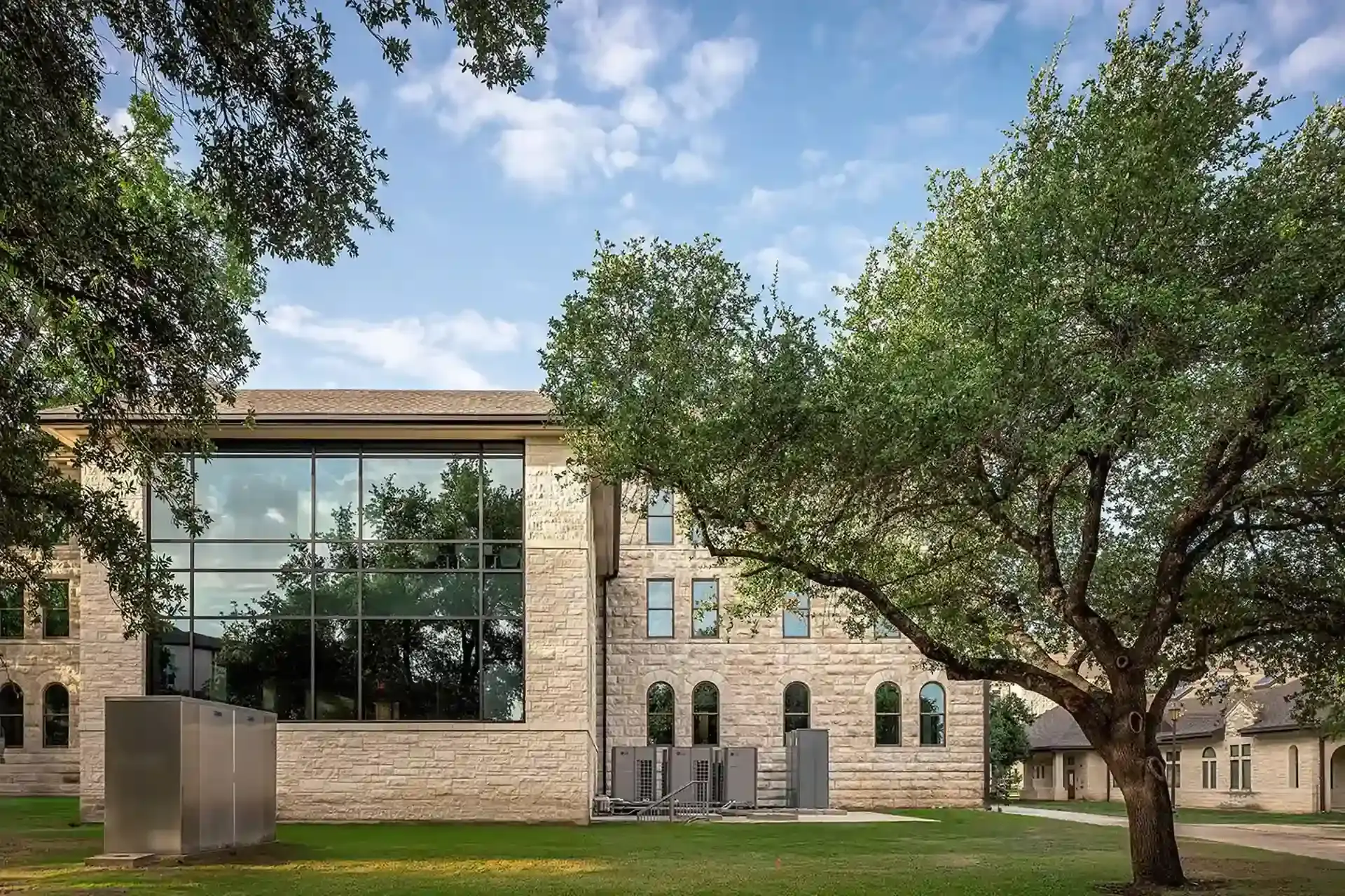 Dating back to 1908, Mood-Bridwell Hall holds the distinction of being the second oldest building at Southwestern University. After determining the 117-year-old wood-framed building was ready for a refresh, Southwestern commissioned Linbeck to oversee its major renovation and restoration. Linbeck completed exterior renovations to the envelope, including the addition of new windows, tuck pointing of the existing brick façade, and a new TPO roof; renovated public spaces; and transformed the atrium into a multi-purpose space with significant A/V components and a dramatic skylight. The project added a new coffee bar and lounge, student collaboration space, and annex structure with a glass curtainwall system. Mechanical and electrical systems were overhauled to meet current performance standards. A full restoration of the iconic rooftop terrace involved incorporating a new structural framing system, pedestal pavers, and roof drains. The terrace is now a welcoming space for various activities.