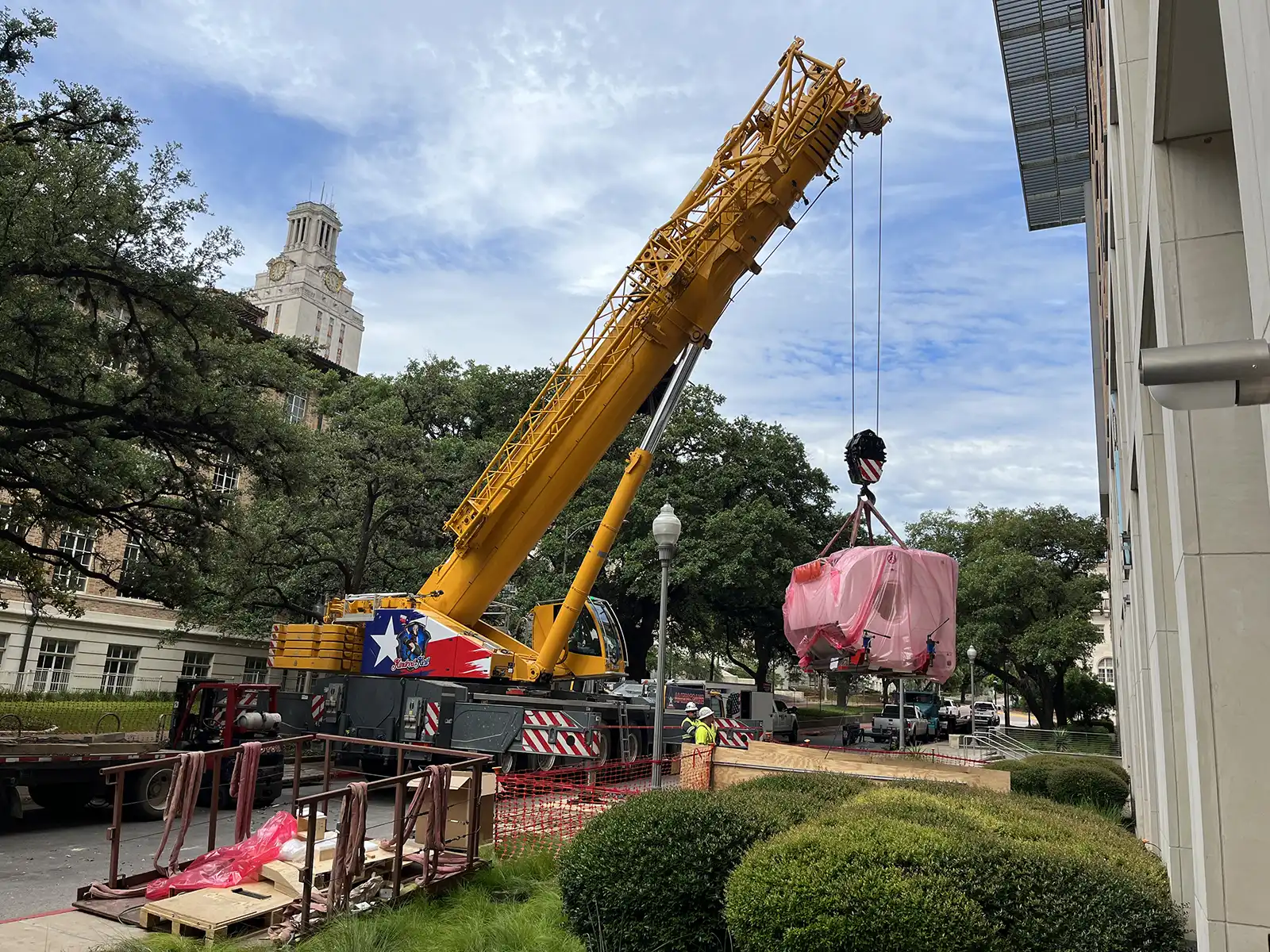 Linbeck successfully completed a replacement and renovation in the Norman Hackerman Building (NHB) at UT Austin. The original MRI within the basement-level suite, a Siemens 3T Skyra MRI, had reached the end of its usable life and needed to be replaced with a Siemens 3.0T Prisma MRI. Following case studies and meetings between Linbeck, UT Austin, and the design team, we determined using a 12’ x 12’ hole (drop zone) at the NHB’s south patio was optimal for performing the MRI swap. This highly complex work required removing portions of the patio floor for the hole/drop zone, performing extensive MEPF reconfigurations, and reinforcing affected areas of the NHB. After the MRI replacement, Linbeck closed the drop zone and structurally reinforced the NHB. Re-routing of existing MEPF systems were designed and installed for future equipment swaps, including a future 7T magnet.