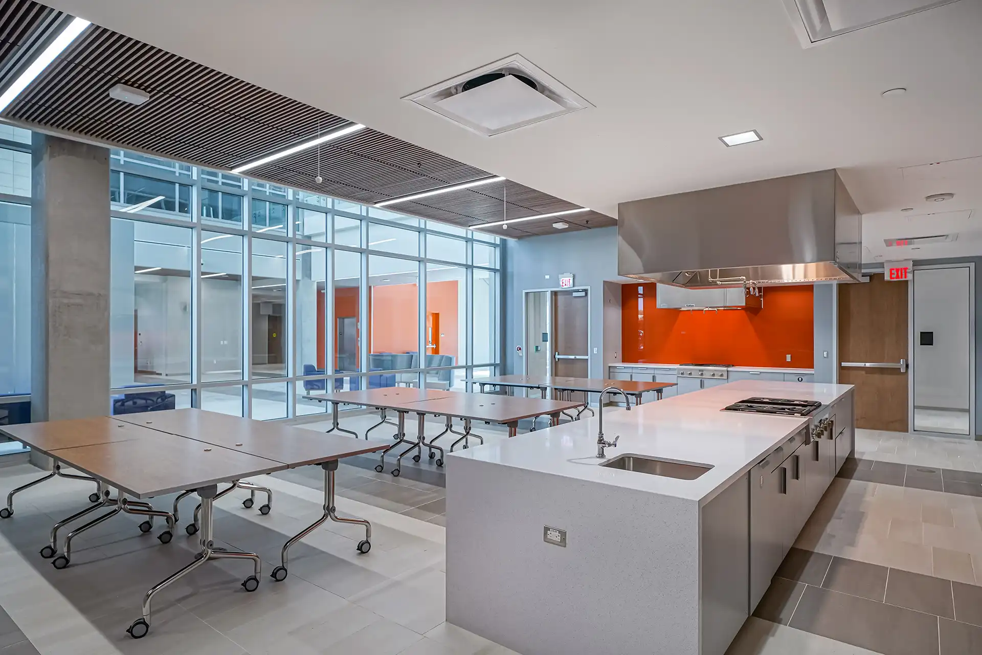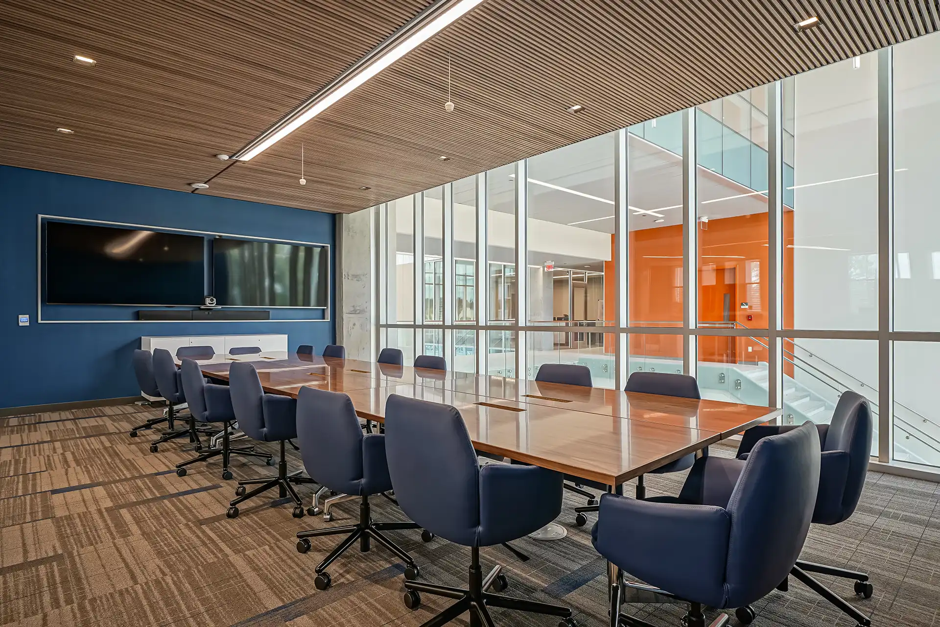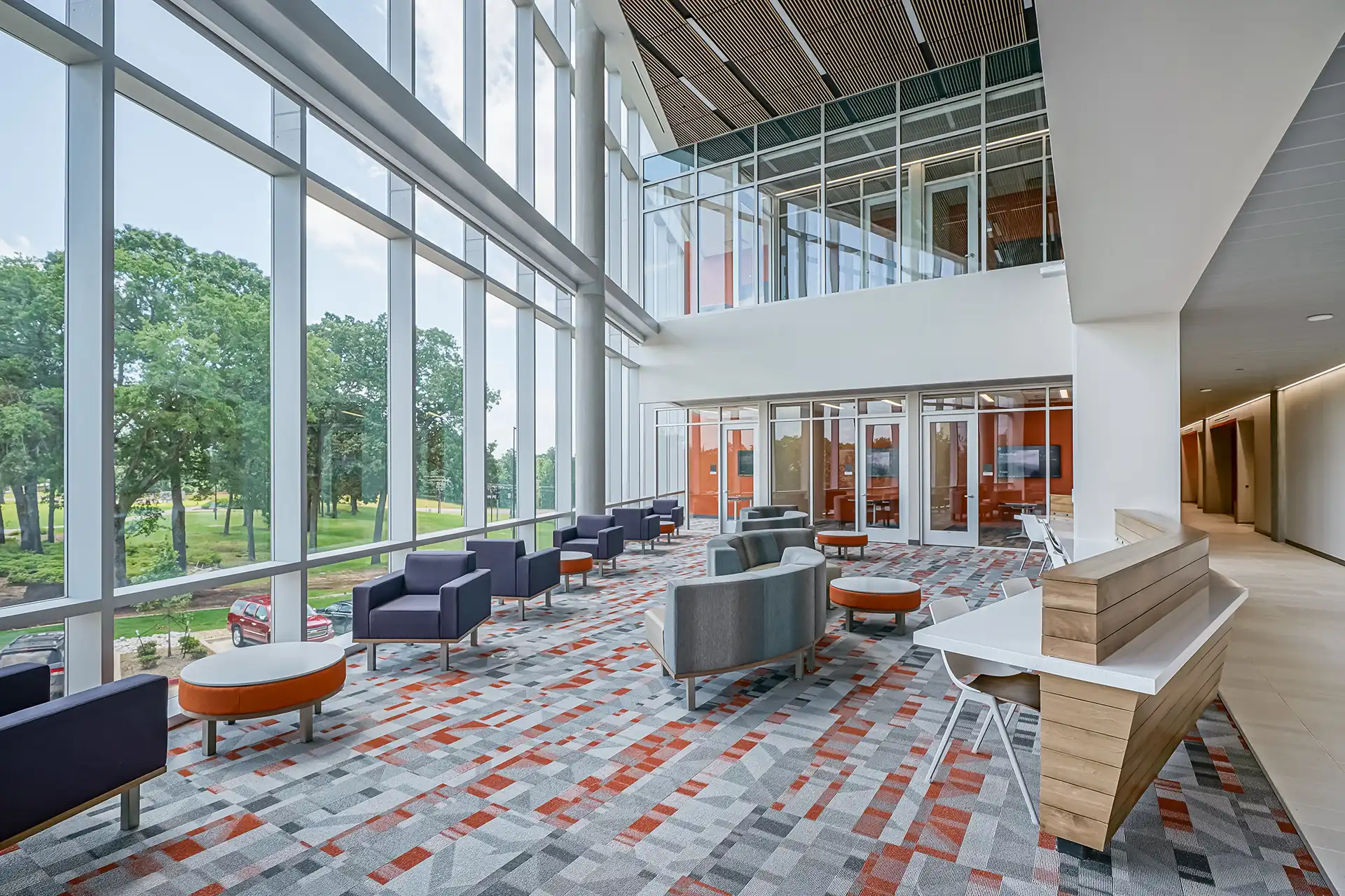 The new Community and Rural Health Center addresses the public health challenges faced by Northeast Texas, serving as a model for wellness and community education. Focused on promoting healthy lifestyles, the center will provide ongoing education to the community on key public health issues and serve as a hub for research, service, and outreach. This three-story building is the first free-standing academic facility on campus and serves as the home for The University of Texas Health Science Center’s School of Community and Rural Health. The center includes modern classrooms, research spaces, offices, and collaborative areas, with shell space for future program expansion. A central courtyard adds a tranquil space for relaxation, fostering an environment conducive to both health and learning.