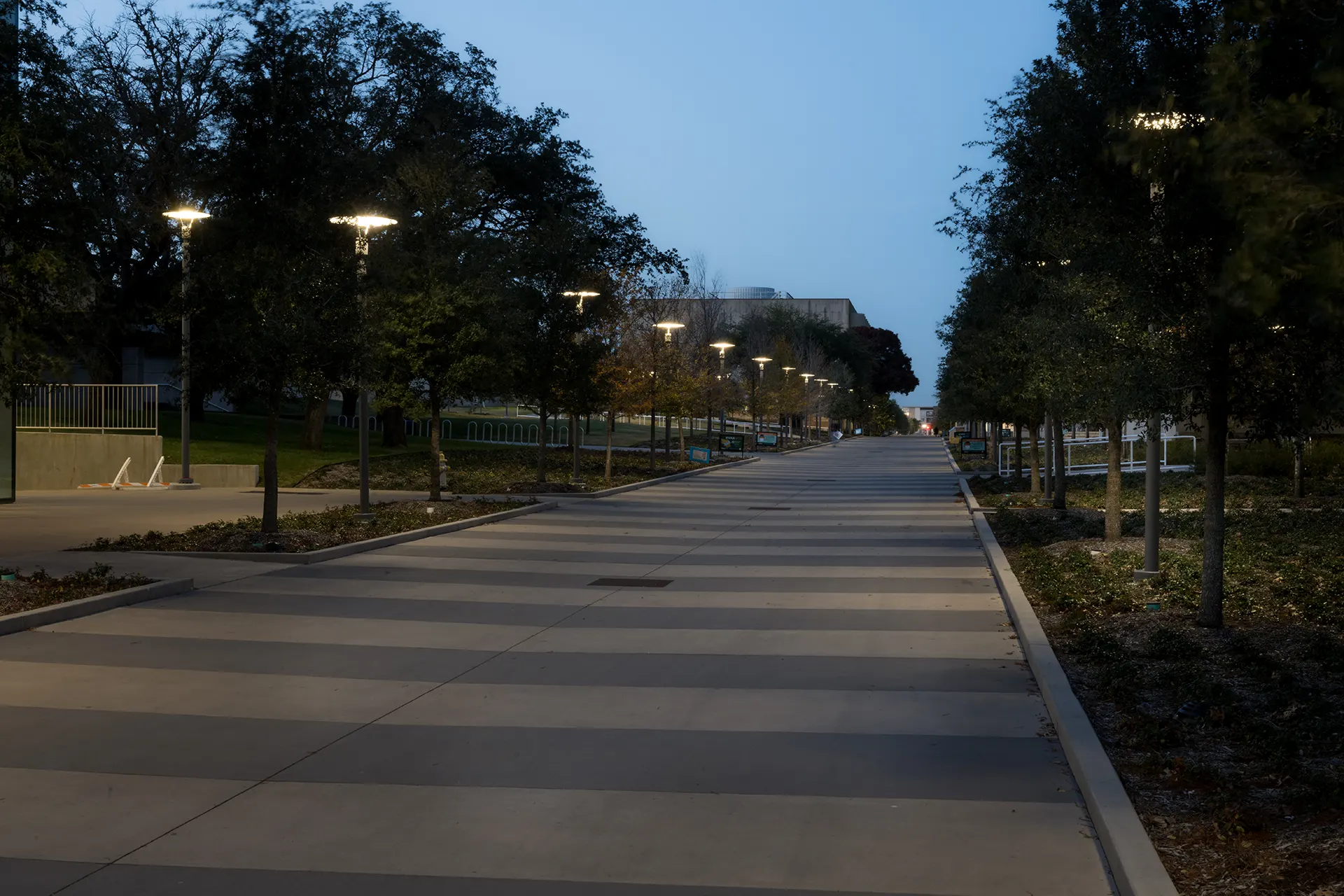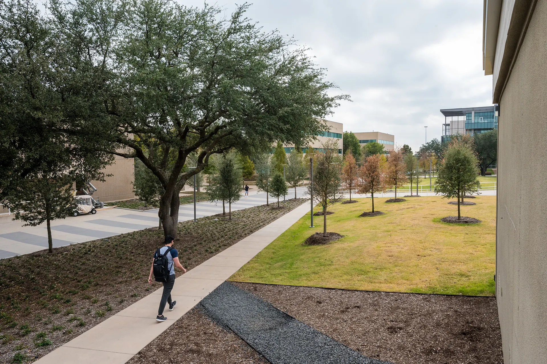 The Campus Landscape Enhancement Program breathed new life into the University of Texas at Dallas. Led by world-renowned landscape architect Peter Walker and Partners, the project addressed nine areas of the campus, extending from the campus core to the perimeters in all directions. Included within the beautification project were new pedestrian promenades, significant groves of canopy trees, heavy understory ornamental trees, ground cover and sod, creek enhancements, signage/entryways at key arteries to campus, lighting, artwork, and outdoor amenities. Encompassing more than 100 acres, the program required more than 1,300 new trees to meet the specifications for matching vegetative materials. To accomplish this, Linbeck incorporated multiple tree sources and invited representatives from the university and landscape architect to each nursery to identify the new trees for campus