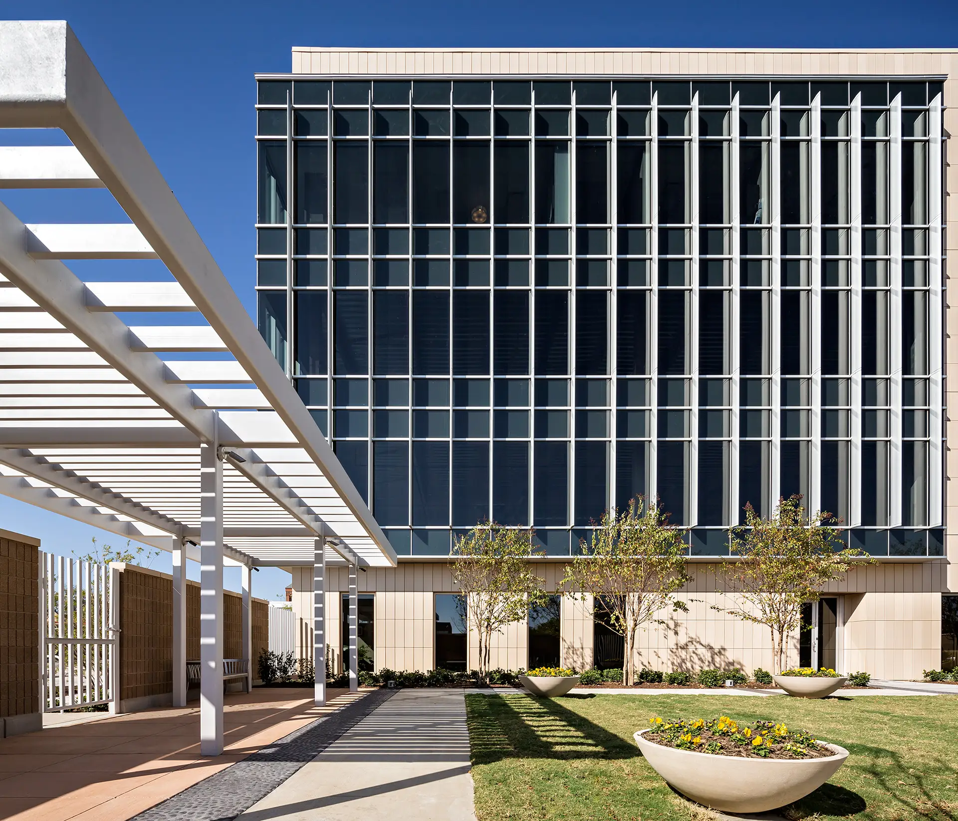 Linbeck served as the construction manager for the Moncrief Cancer Institute, an affiliate of the University of Texas Southwestern Simmons Cancer Center. As the only National Cancer Institute-designated cancer research, prevention, treatment and wellness center in North Texas, this one-of-a-kind facility features a unique facade of terra-cotta, with patterns that symbolize the individual nature of each patient’s needs. The interior of the building, flooded with natural light due to floor-to-ceiling windows, includes counseling, genetic counseling, medical examination, and preventative screening services, as well as administrative offices, an expanded fitness center, demonstration kitchen, and 90-seat auditorium for research and public education. Outside, gardens and water fountains wrap around the building and do their part to foster a calming atmosphere.